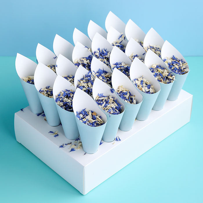 Sustainability: Cones and Tray can be fully recycled as they're made of paper, and the flower confetti will naturally biodegrade in a few days when thrown outside.