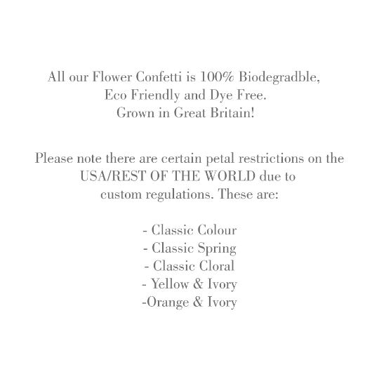 We offer a huge range of Flower Confetti to make it as affordable as possible. Rest assured, all our petals are eco-friendly, dye-free and have the wow factor!