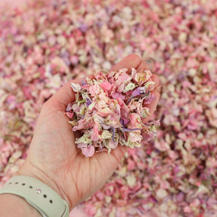 This pretty Bubblegum Pinks premium wedding confetti is the ultimate choice if you're planning an epic pink themed wedding. It's a combination of light pinks, rich pinks and lilac flower petals.