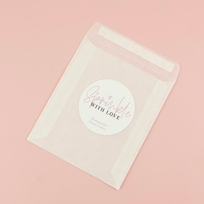 These cute sachets are made from glassine, meaning they're full recycable after the big day. They come with a self sealing strip, making filling and sealing the packets super easy.
