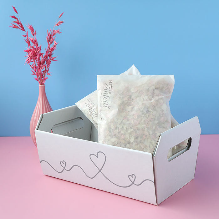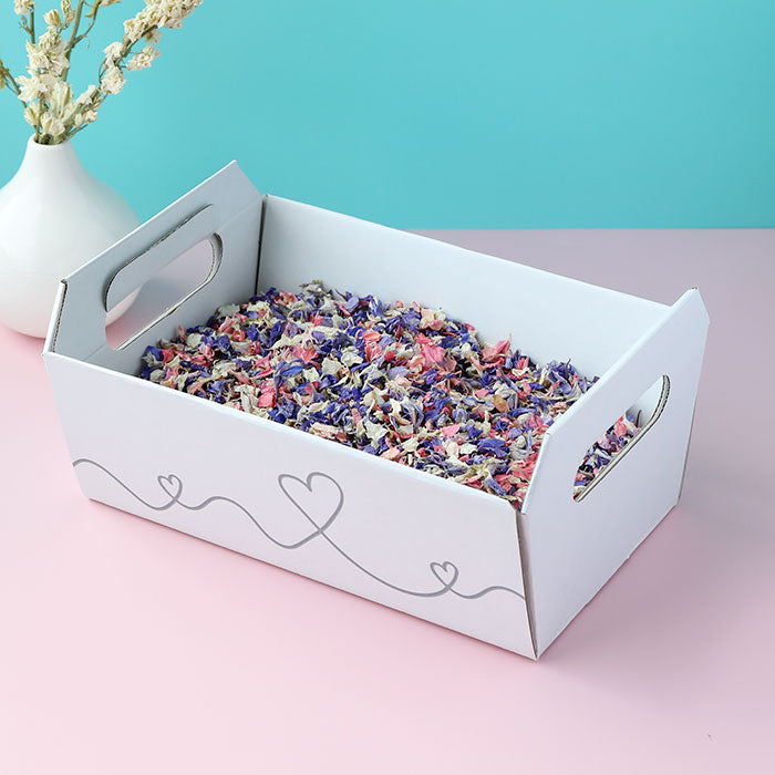Easy to set up, eco and budget friendly confetti tray with 2 litres (16-20 handfuls) of your chosen of biodegradable flower confetti.
