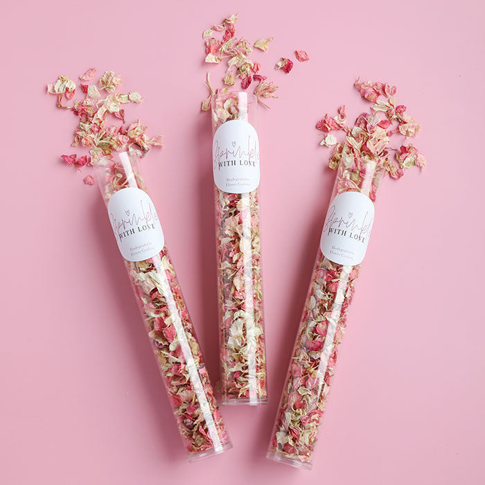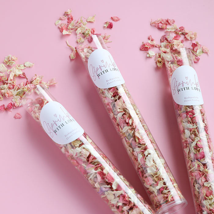 To use: Pop open the top and flick out the pretty flower confetti. Recycle container after use and the petals will naturally biodegrade within a few days.